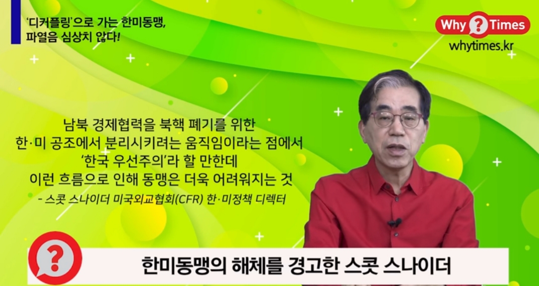 - 스콧 스나이더, 한미간 디커플링 넘어 한미동맹의 해체 경고