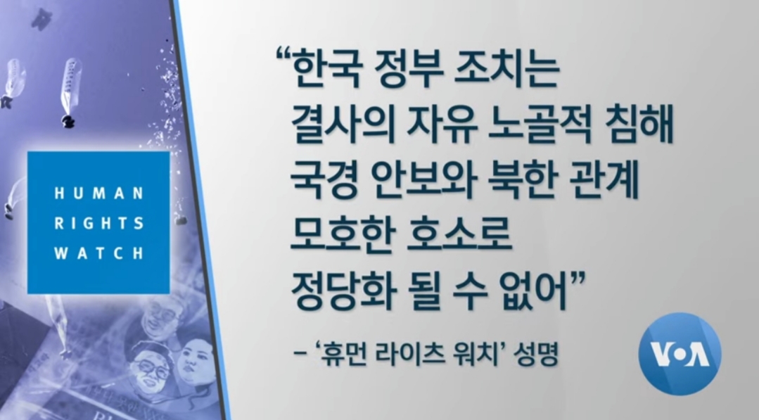 한국 정부가 대북 전단 살포 활동을 해 온 탈북민 단체에 대해 설립 허가를 취소하고 수사 의뢰를 한 조치에 국제인권단체를 중심으로 우려의 목소리가 나오고 있습니다. 북한 주민들의 인권 상황과 관련해 북한 정권을 압박하는 대신, 오히려 한국의 민주주의적 가치를 희생시키고 있다고 비판했습니다. 김영교 기자가 보도합니다. (영상취재: 이상훈 / 영상편집: 조명수)