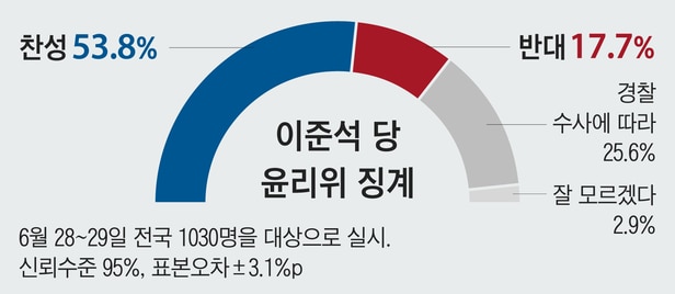 다만 이 대표에 대한 징계가 현실화될 경우 여권은 '토사구팽'이란 비판 여론에서 자유롭지 못할 것으로 보인다. 특히 이 대표 지지세력인 20·30대 남성 지지층이 대거 이탈하며 당이 위기에 빠질 가능성도 점쳐진다. 경찰 수사가 완료되지 않은 상황에서 수사 기능이 없는 윤리위가 성상납 증거인멸 여부를 판단하는 것이 부적절하다는 비판도 나온다.
