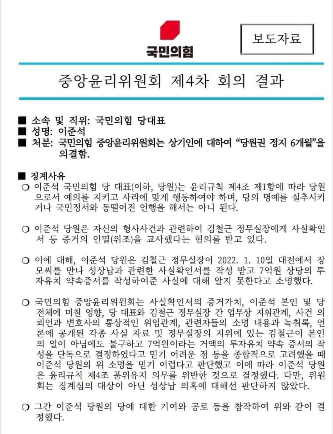 | ■■국민의힘 윤리위 "이준석(당 대표) 당원권 정지 6개월"… 결국 중징계 처분■■ (0) | 2022.07.08 |