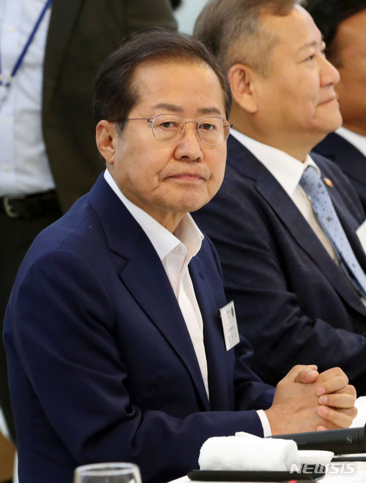 시·도지사협의회 임시회장인 홍준표 대구시장이 8일 서울 용산 대통령실 청사에서 열린 제1차 민선 8기 시·도지사 간담회에서 생각에 잠겨 있다.
