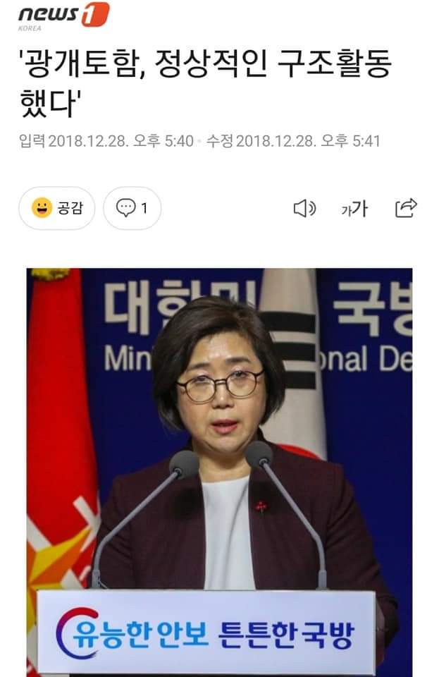일명 ‘2018년 한일 해상 군사분쟁’으로 불리는 이 사건은 EEZ에 진입한 탈북어민을 두고 일본 해상자위대 소속 초계기 P-1와 우리 해군 구축함 광개토대왕함 사이에 일어난 ‘일촉즉발’의 위기 순간이었다.