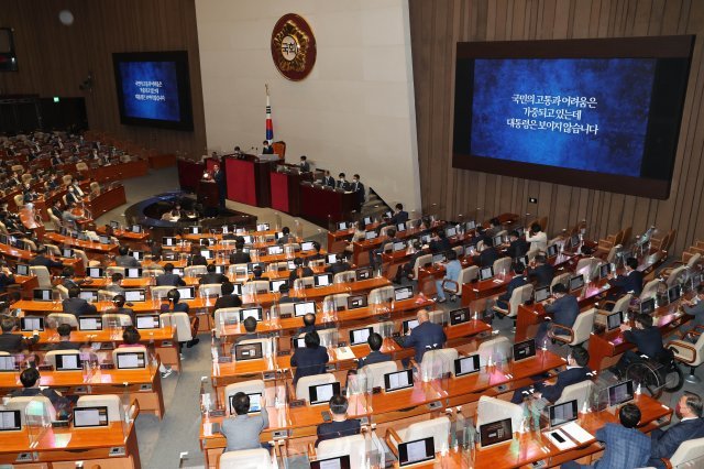 이에 허은아 국민의힘 수석대변인은 본회의가 끝난 뒤 논평을 통해 “민주당은 지난 대통령선거와 지방선거에서 있었던 국민의 엄중한 심판을 망각한 듯 ‘대통령 탄핵’을 경고했다”며 “국민은 169명의 국회의원 거대 의석을 무기로, 마치 언제든 ‘대통령 탄핵’을 시킬 수 있다는 듯한 오만함을 느꼈을 것”이라고 지적했다.