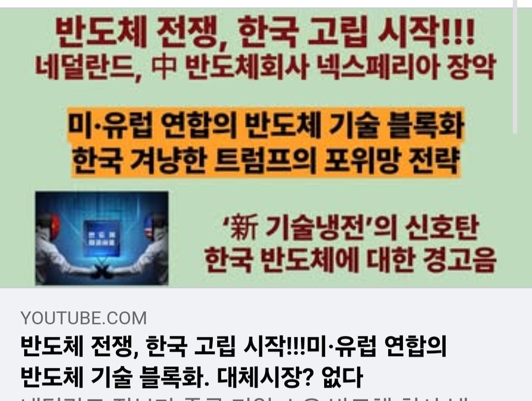 이번 네덜란드의 조치로 인해, 미국과 유럽은 앞으로 한국의 반도체 기업들에 대해 더욱 직접적이고 구조적인 압박을 가하게 될 것이다. 그 결과, 한국은 국제사회에서 ‘친중 정권 아래 놓인 중국의 기술 파트너’ 로 명확히 분류하게 될 것이다.