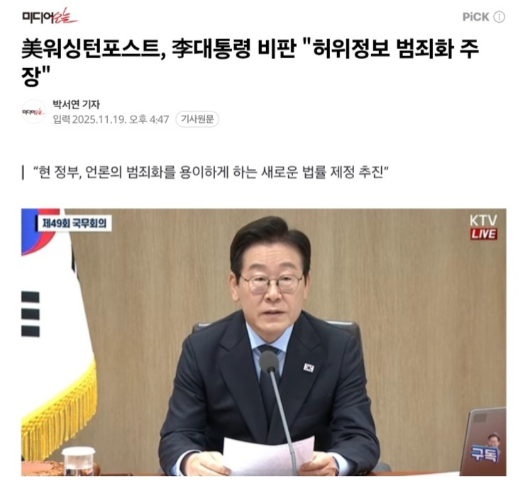 ※美워싱턴포스트, 李대통령 비판 “허위정보 범죄화 주장”