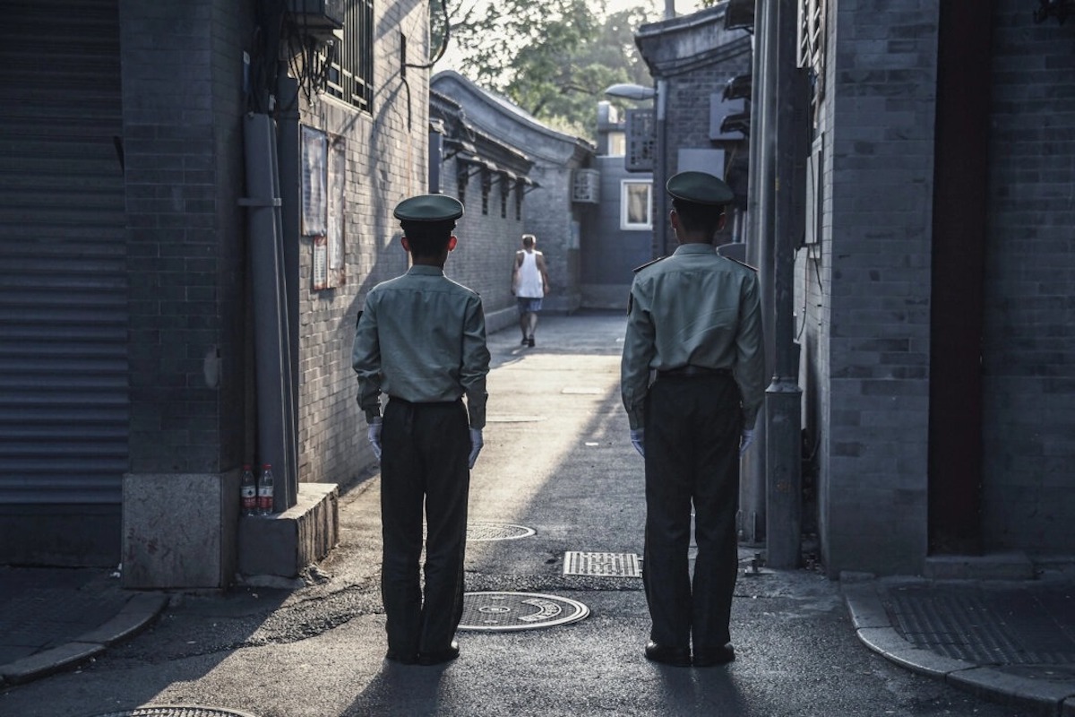 중국 무장경찰이 2019년 9월 7일 베이징 톈안먼 광장 인근 거리의 한 골목을 경비하고 있다. | Greg Baker/AFP via Getty Images/연합