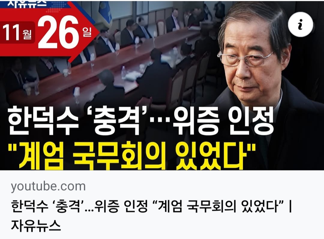 | ■한덕수, 12.3 비상계엄 국무회의 CCTV가 공개되자 헌법재판소에서 위증을 했다고 실토 (3) | 2025.11.27 |