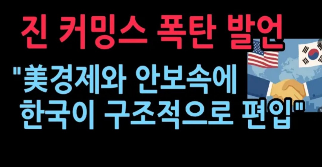 ■진 커밍스(Jean Cummings)폭탄 발언 "미국의 경제와 안보속에 한국이 구조적으로 편입됐다"