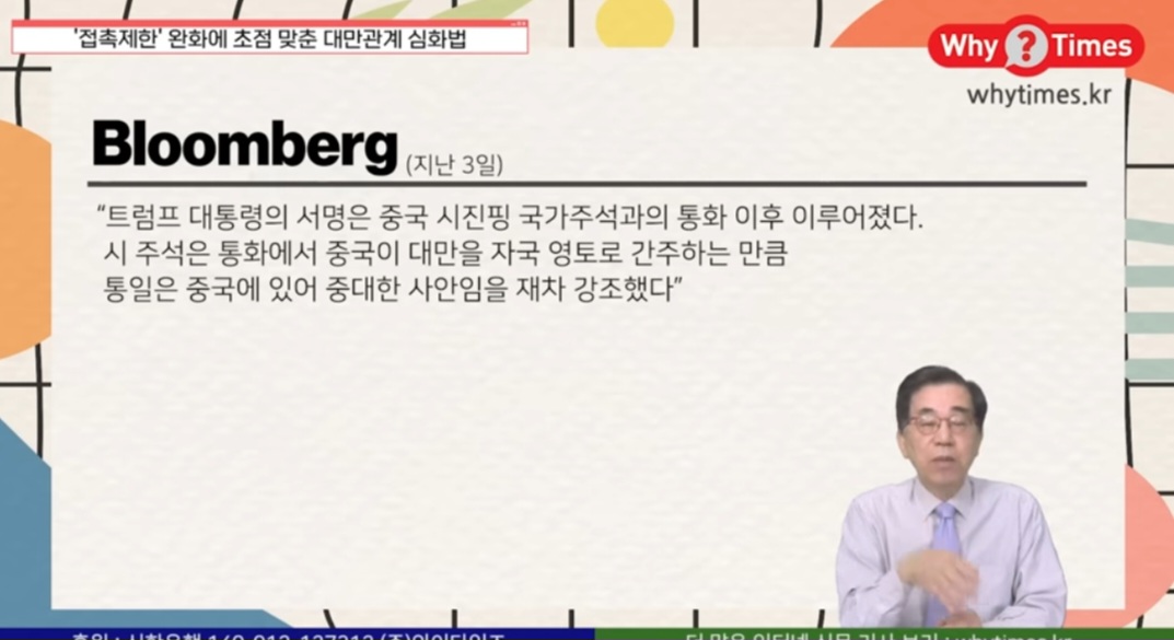 블룸버그는 이어 “트럼프 대통령의 서명은 중국 시진핑 국가주석과의 통화 이후 이루어졌다”면서 “시 주석은 통화에서 중국이 대만을 자국 영토로 간주하는 만큼 통일은 중국에 있어 중대한 사안임을 재차 강조했다”고 짚었다.