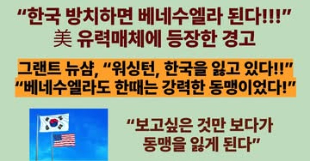 ■美 유력매체에 등장한 한국 공산화 경고. 그랜트 뉴샴, “워싱턴, 한국을 잃고 있다”, “한국 방치하면 베네수엘라 된다!!!”