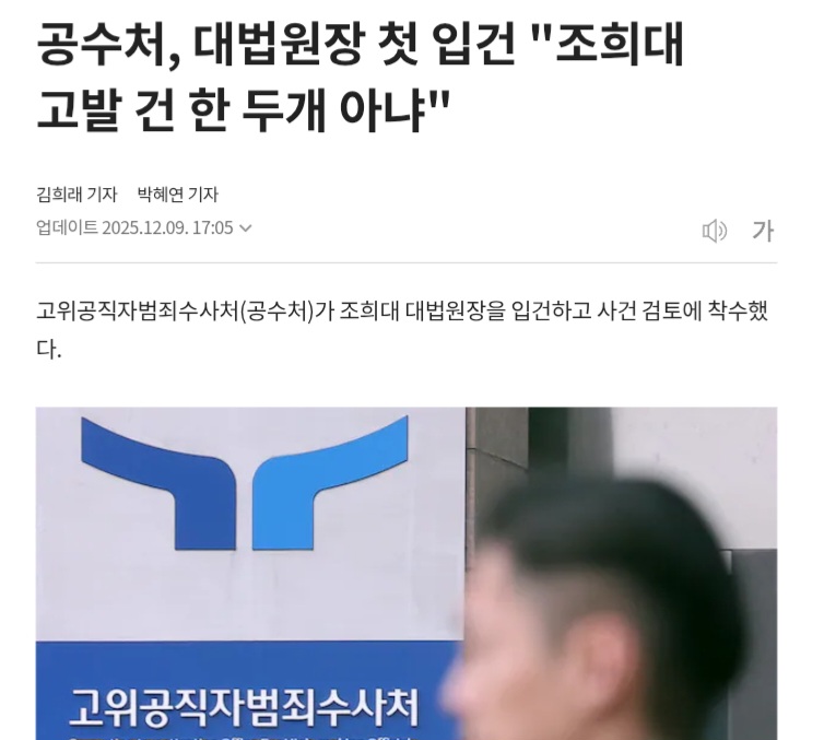 사법부 수장인 조희대 대법원장이 9일 고위공직자범죄수사처(공수처)에 입건됐다. 현직 대법원장의 입건은 헌정 사상 처음이다.