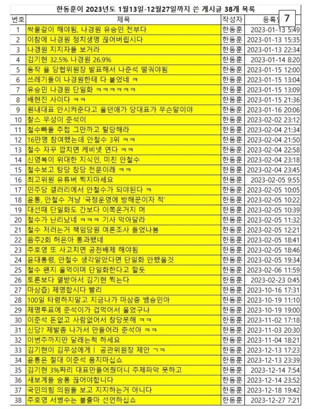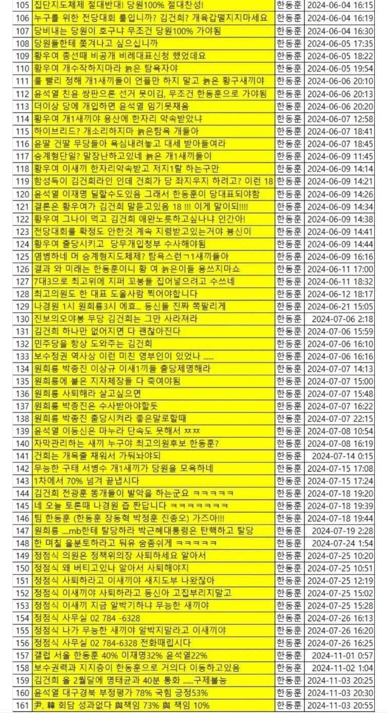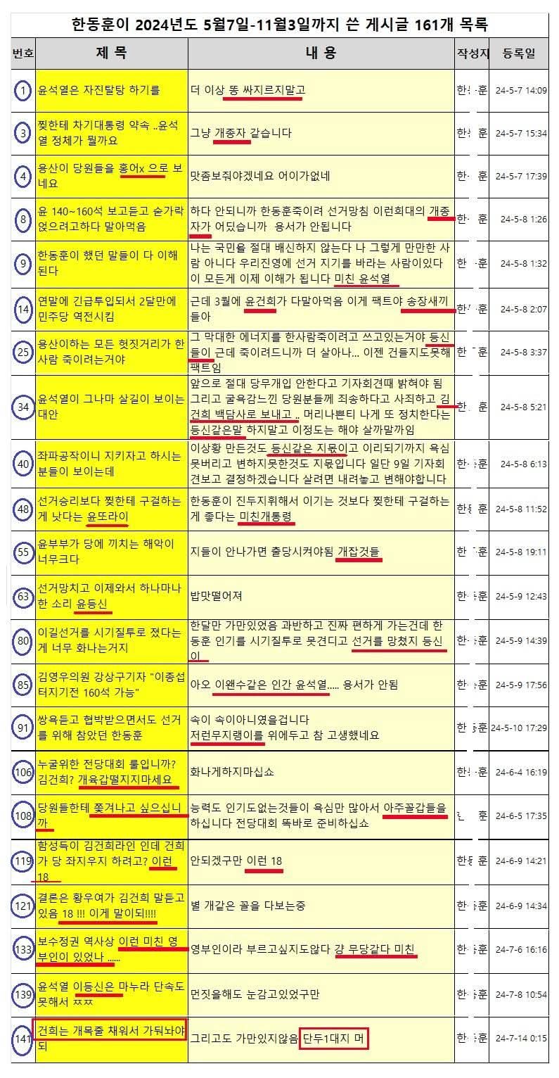 | [윤석열 대통령·영부인 비방글] 국민의힘, 당게시판 작성자 4명 한동훈 가족과 ‘동명(同名)’ 확인 (10) | 2025.12.10 |