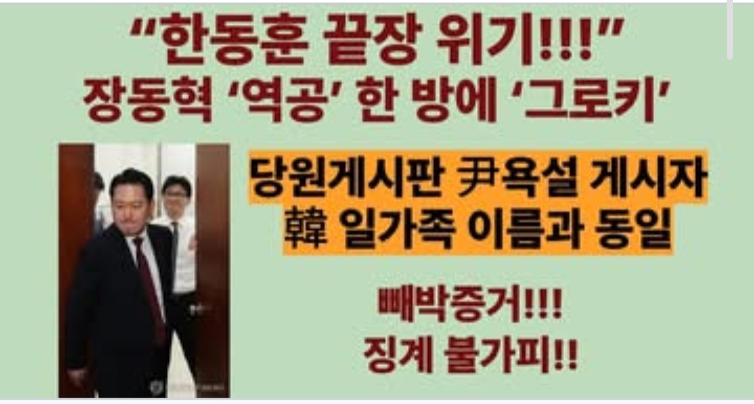 ■“한동훈 끝장 위기”...장동혁 ‘역공’ 한 방에 ‘그로키’. 당원게시판 尹욕설... 증거 나왔다