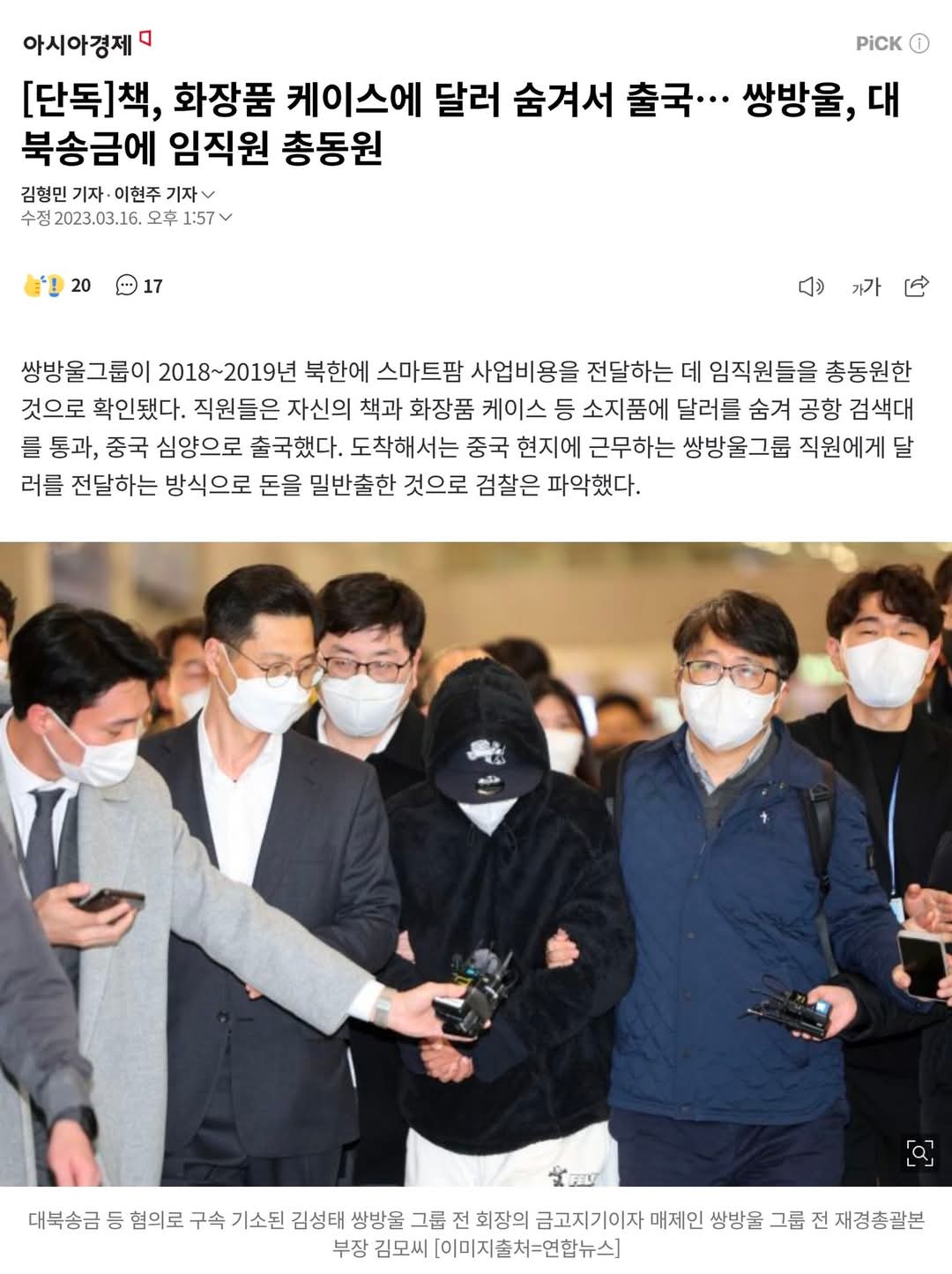 지난 2019년, 쌍방울 그룹 임직원들이 대북송금을 위해 달러를 밀반출할 때 썼던 그 수법 아닌가. '책과 화장품 케이스에 달러를 숨겨라.' 당시 검찰 공소장에 적시된 그 생생한 범죄의 수법이 대통령에게 깊이 각인돼 있었던 모양이다.