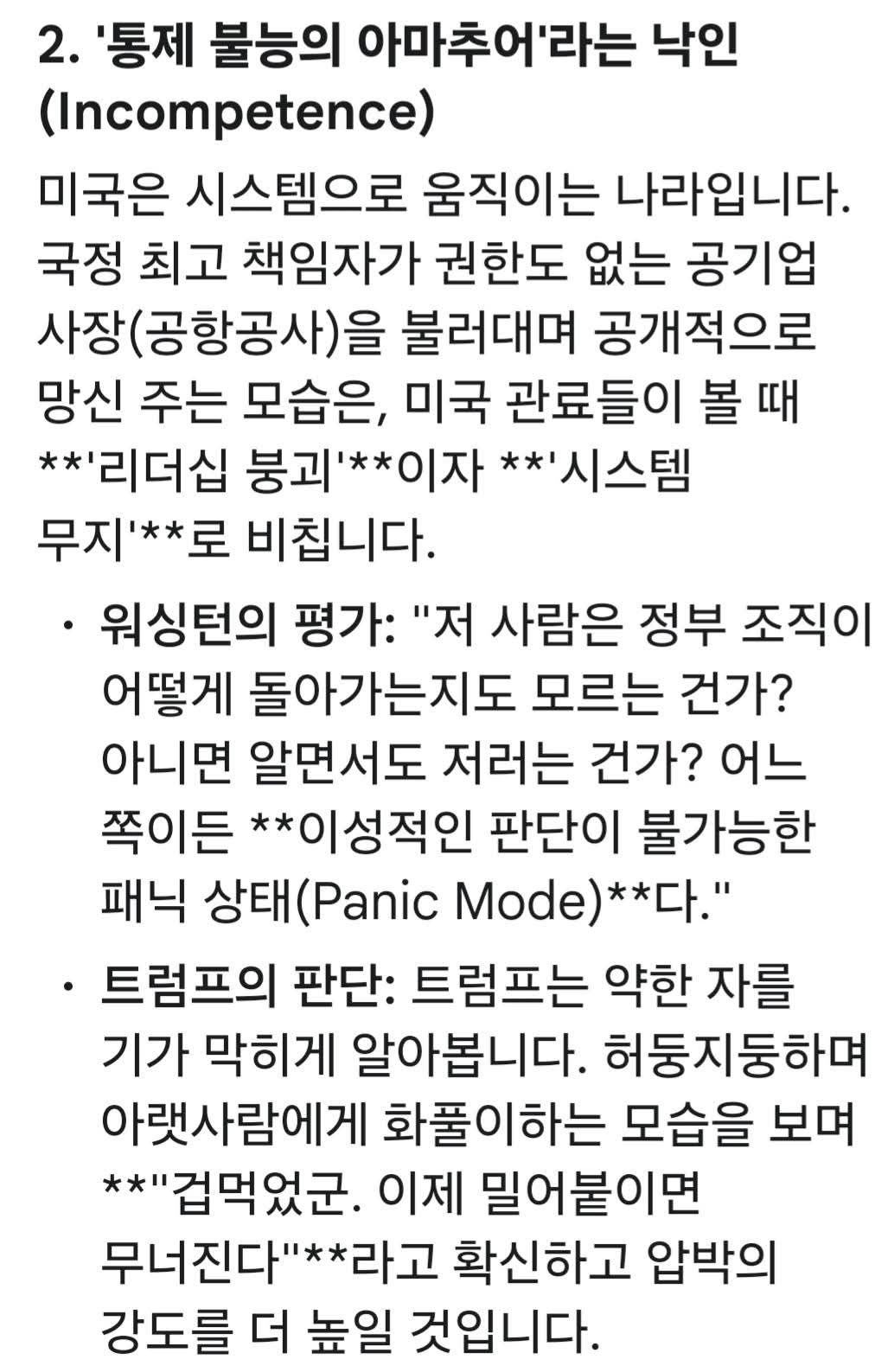 국민들은 이런 행위를 정상적인 국정운영으로 착각하거나, “일 잘하는 대통령”의 모습으로 평가해서는 결코 안 된다. 이건 잘하는 것이 아니라, 국가를 심각한 위험에 빠뜨리는 행위이기 때문이다. 이런 공포 분위기와 정치적 연출은 행정기밀을 노출시키고 실무 혼선을 초래하며, 더 나아가 국가 리더십의 품격과 조직문화의 신뢰를 근본적으로 훼손한다.