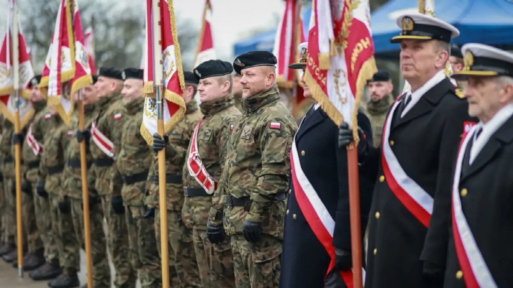 2024년 11월 28일 폴란드 그디니아의 ORP 브위스카비차 선박 박물관 앞에서 해군의 날 퍼레이드 중인 폴란드 육군 및 해군 장교들. │ Polish Ministry of Defense/Flickr