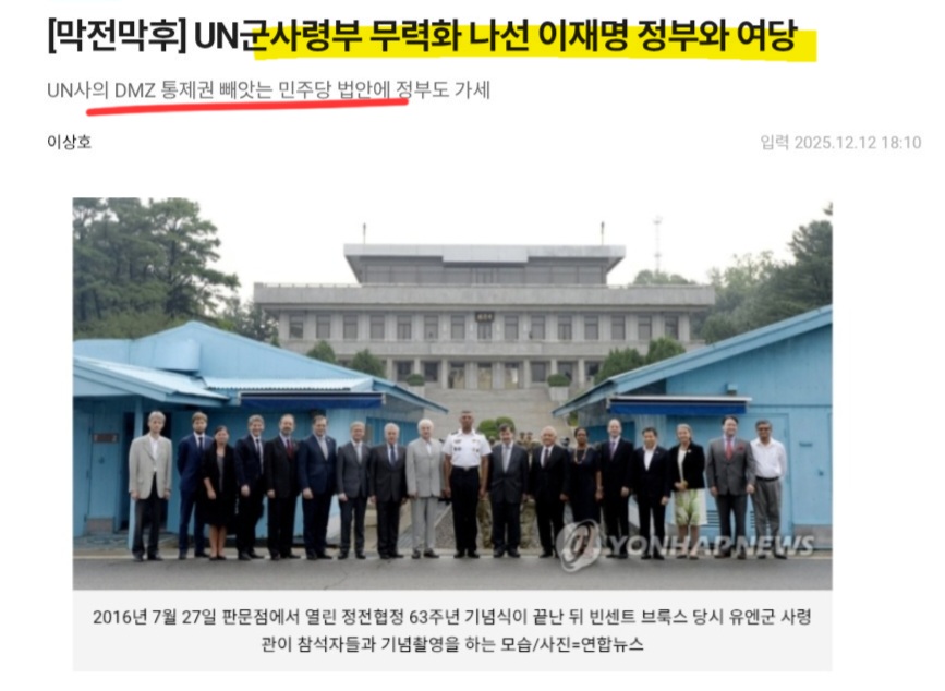 유엔사 ‘DMZ 출입 통제 권한 재확인’ 성명…한국 추진 ‘DMZ법’과 충돌