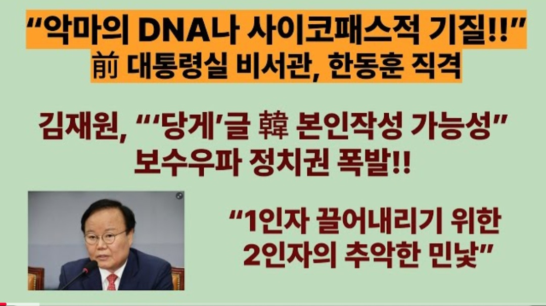 ■김성회 前 대통령실 비서관, 한동훈 직격...“악마의 DNA나 사이코패스적 기질!!”/ 김재원 국민의힘 최고위원(변호사), “‘당게’ 글 韓 본인 작성 가능성”