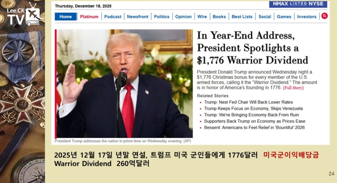 | ■재미교포 제임스 신 목사 "이재명, 국제 무대 ‘직격 고발’… EU·G7 전면 접수로 포위망 형성 (5) | 2025.12.20 |