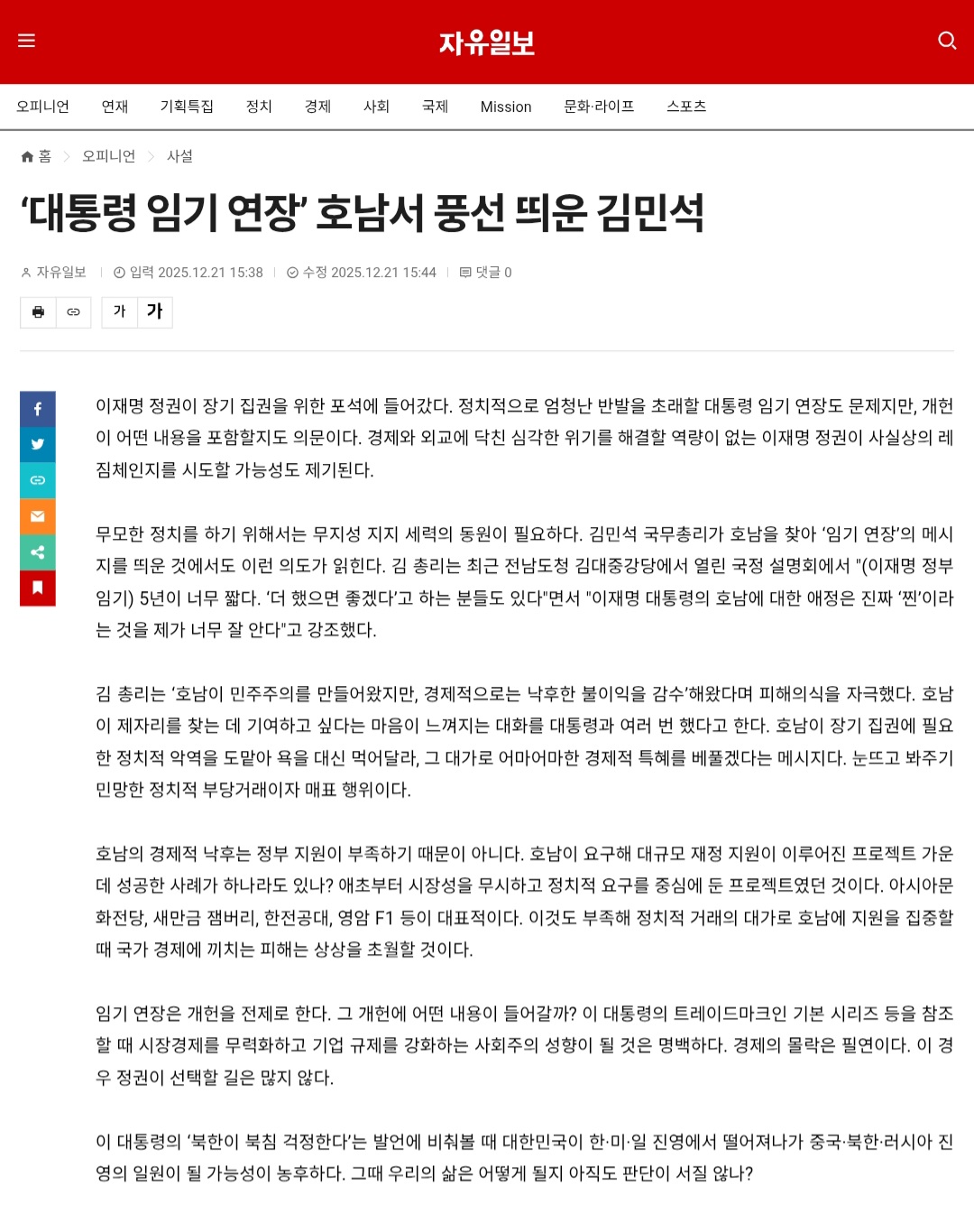 | ■[권순활 칼럼 : 우파 정당 사상 처음] 국민우힘 책임당원 100만… 장동혁 취임 후 20여 만명 급증 (3) | 2025.12.21 |