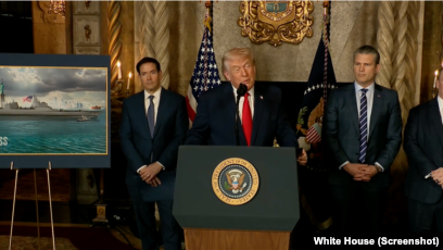 트럼프 대통령은 22일 플로리다주 마러라고 자택에서 열린 발표 행사에서 마르코 루비오 국무장관, 피트 헤그세스 국방장관, 존 펠런 해군장관과 함께 이 같은 계획을 공개했습니다.