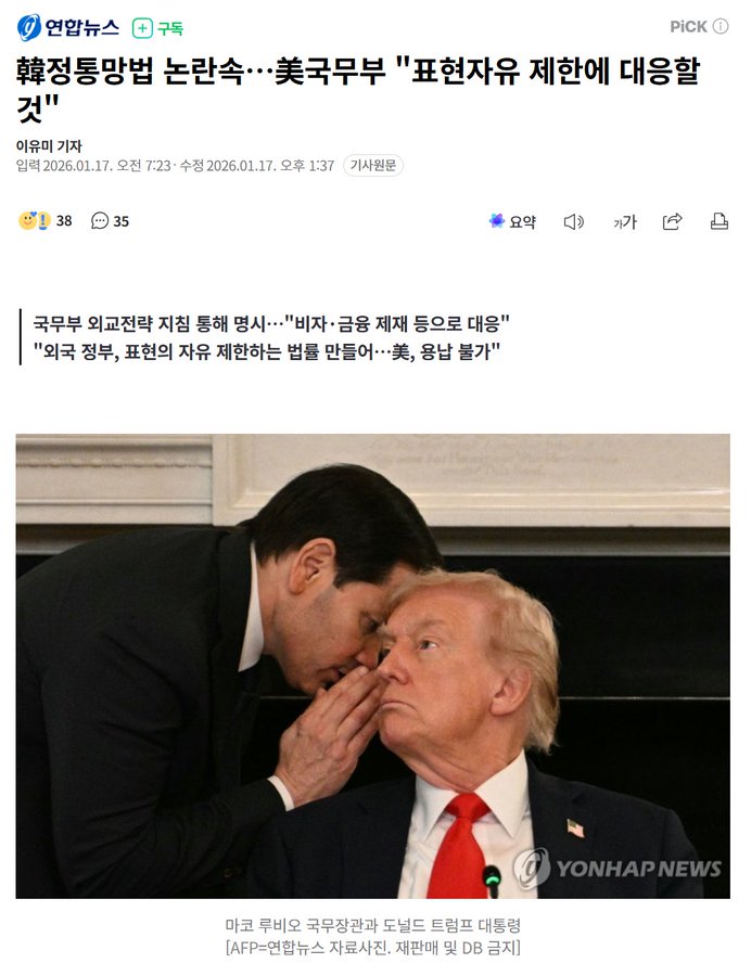 트럼프 행정부가 향후 5년간 외교 기조를 담은 전략 문서에서 ‘국가 주권’과 ‘표현의 자유’를 최우선 가치로 내세우며, 이를 침해하는 외국 정부의 입법·정책에 대해 비자 및 금융 제재까지 검토하겠다는 원칙을 공식화했다.