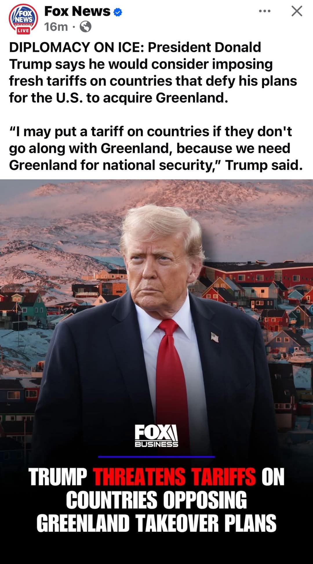 우리는 수년 동안 관세나 그 어떤 형태의 보상도 받지 않은 채 덴마크와 유럽연합(EU) 국가들, 그리고 다른 나라들을 사실상 보조해 왔다. 이제 수세기가 지난 지금, 덴마크가 돌려줄 때가 왔다. 세계 평화가 걸려 있다.