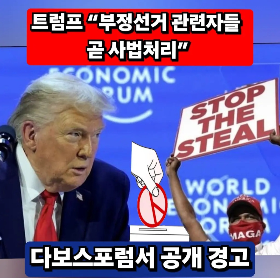 도널드 트럼프 미국 대통령이 세계 정상들이 한자리에 모인 다보스 포럼 무대에서 2020년 미국 대선을 다시 한 번 ‘조작된 선거(Rigged Election)’ 규정했다. 특히 선거 조작 관련자들에 대한 기소가 임박했다고 공개적으로 주장해 국제 사회에 거대한 충격파를 던졌다.