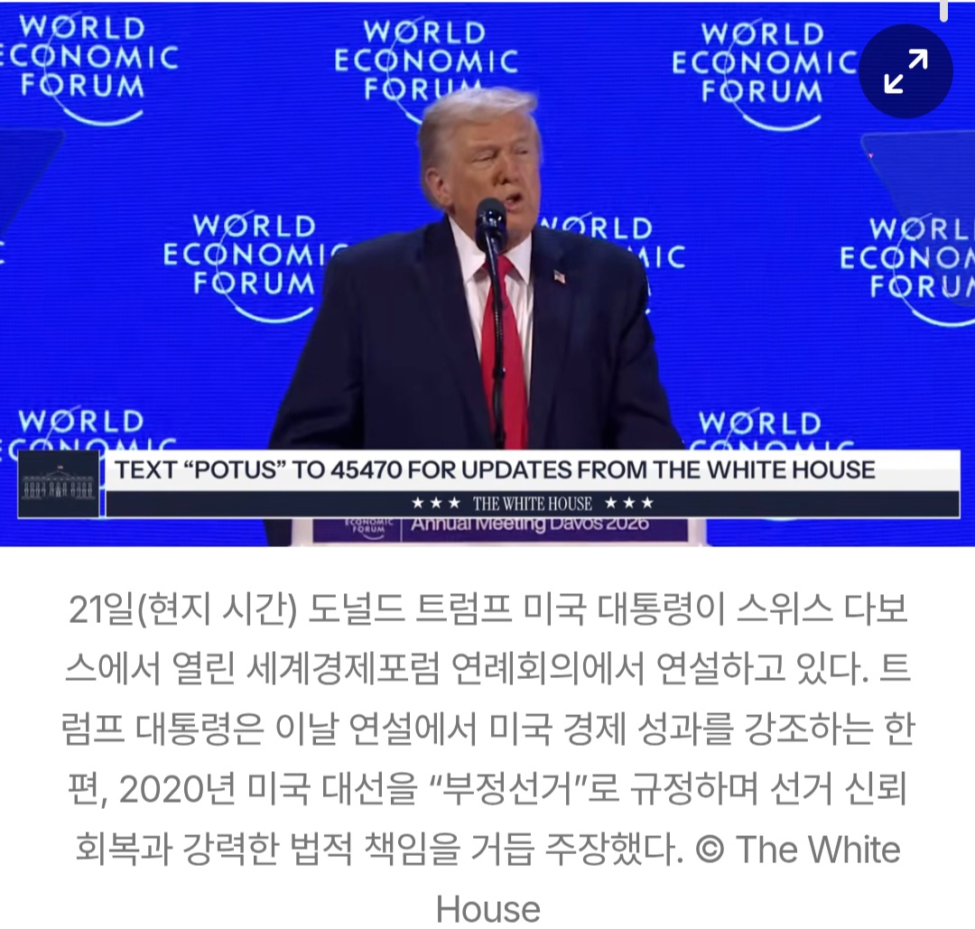 전 세계 정상과 글로벌 기업 지도자들이 지켜보는 다보스 포럼 현장에서 미국 대통령이 자국 선거의 정당성을 정면으로 부정하고, 형사 처벌 가능성까지 언급한 것은 극히 이례적인 장면이라는 평가가 나온다.