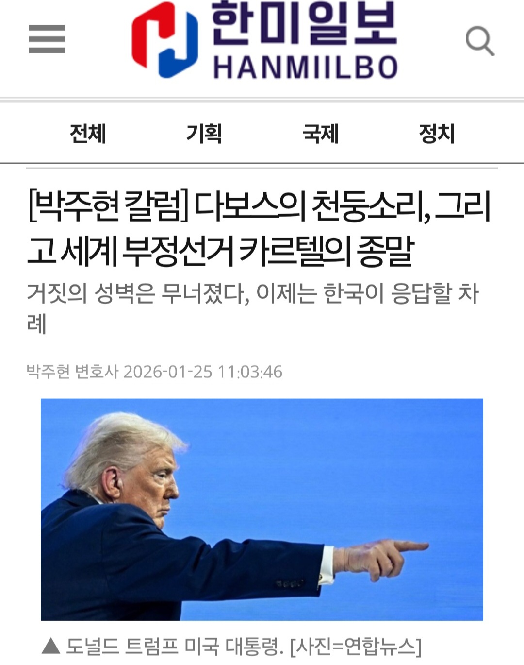 ※[박주현 칼럼] 다보스의 천둥소리, 그리고 세계 부정선거 카르텔의 종말 : 거짓의 성벽은 무너졌다, 이제는 한국이 응답할 차례