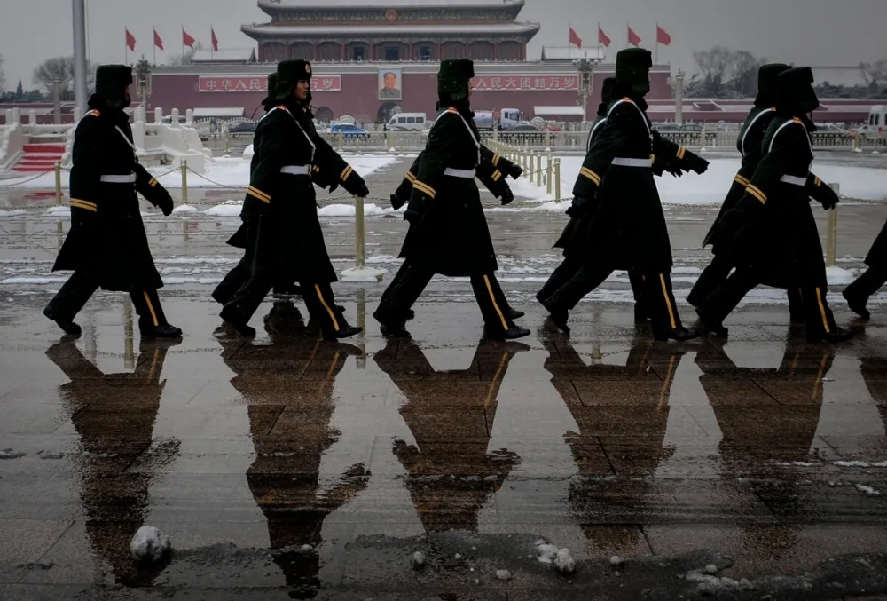 중국 무장경찰이 베이징 천안문광장에서 행진하고 있다. │ Frederic J. Brown/AFP via Getty Images/연합