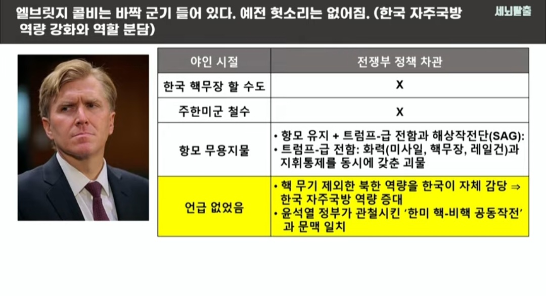 이와 동시에, 전략 문서 발표 직후, 미국 국방부의 핵심 인물이 한국을 직접 방문했다. 이번 2026년 국가국방전략(NDS)을 실질적으로 설계한 핵심 인물인, "엘브리지 콜비(Elbridge Colby)" 미국 국방부 정책담당 차관이다.