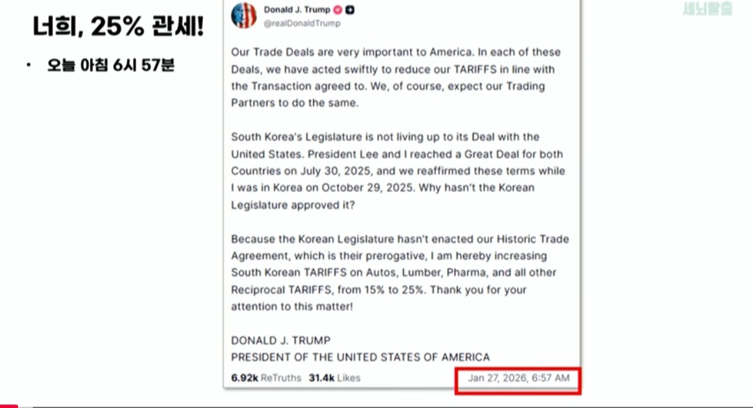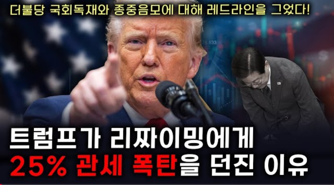 [세뇌탈출 3710탄] 트럼프가 리짜이밍에게 25% 관세 폭탄을 던진 이유… 더불당 국회독재와 종중 음모에 대해 레드라인을 그었다!