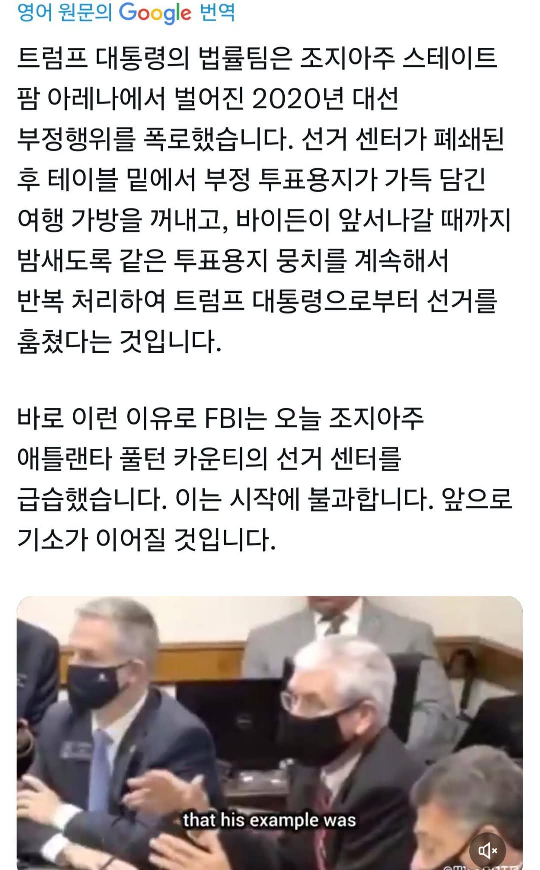 ※미국 부정선거 척결 본격화! 트럼프 대통령 법무팀 2020대선 조지아주 부정행위 폭로