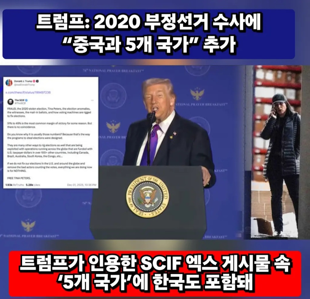' 트럼프가 인용한 SCIF 엑스 게시물 속 ‘5개 국가’에 한국도 포함돼