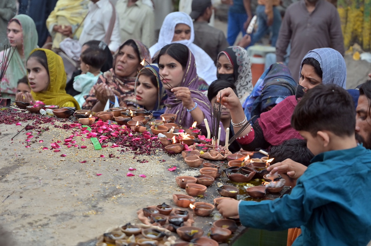 28일(현지시각) 파키스탄 라호르에서 이슬람 순례자들이 16세기 신비주의 종파였던 수피즘 시인 샤 후세인(Shah Hussain)의 묘를 찾아 추모하고 있다. 파키스탄은 남아시아의 대표적인 이슬람 국가다. | EPA=연합뉴스