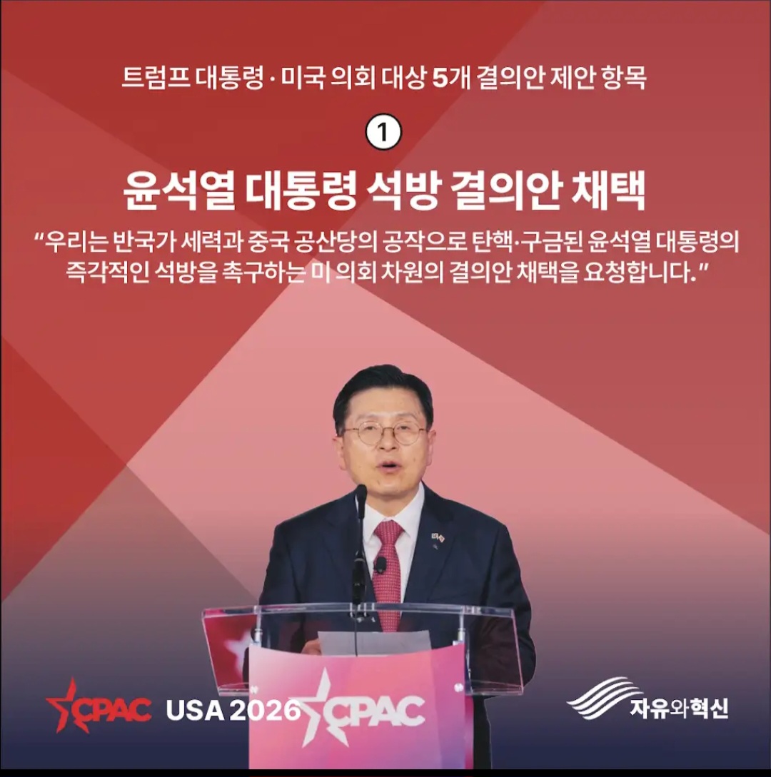 한편, CPAC은 이번 연례 총회 기간 중 인터내셔널 세션에서 채택한《민주주의 퇴보 및 자유 사회에 대한 법적 공세에 맞서 싸운다》는 결의안에 한국을 명시적으로 언급해 향후 파장이 주목된다.