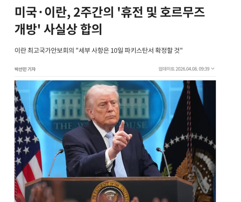 트럼프 대통령은 “과거 분쟁의 거의 모든 주요 쟁점들이 미국과 이란 간에 합의됐지만, 2주라는 기간이 합의를 최종적으로 확정하고 마무리하는 데 도움이 될 것”이라고 말했습니다.